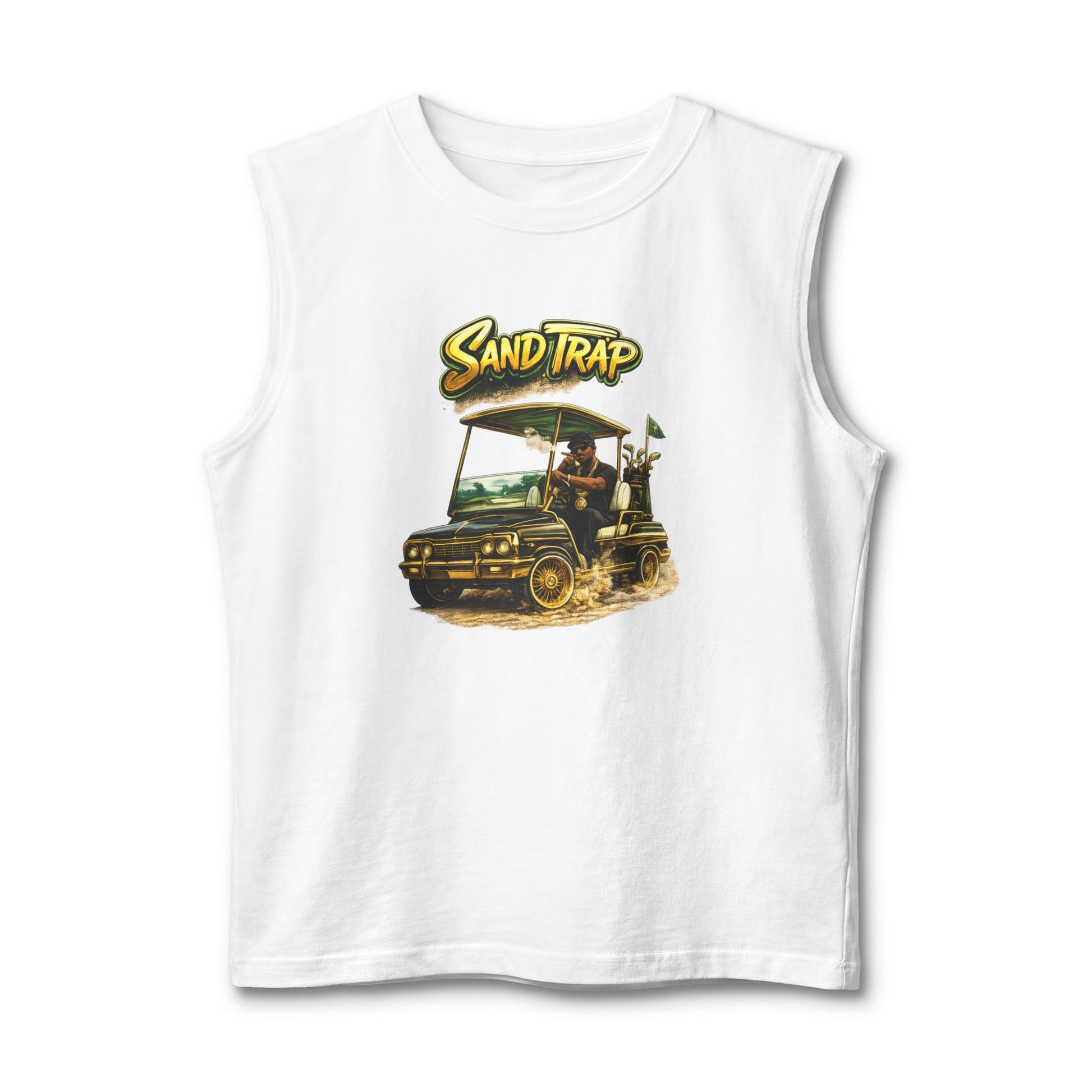 Sand Trap Golf Cart Muscle Tank — Vintage Golf Humor Sleeveless Tee